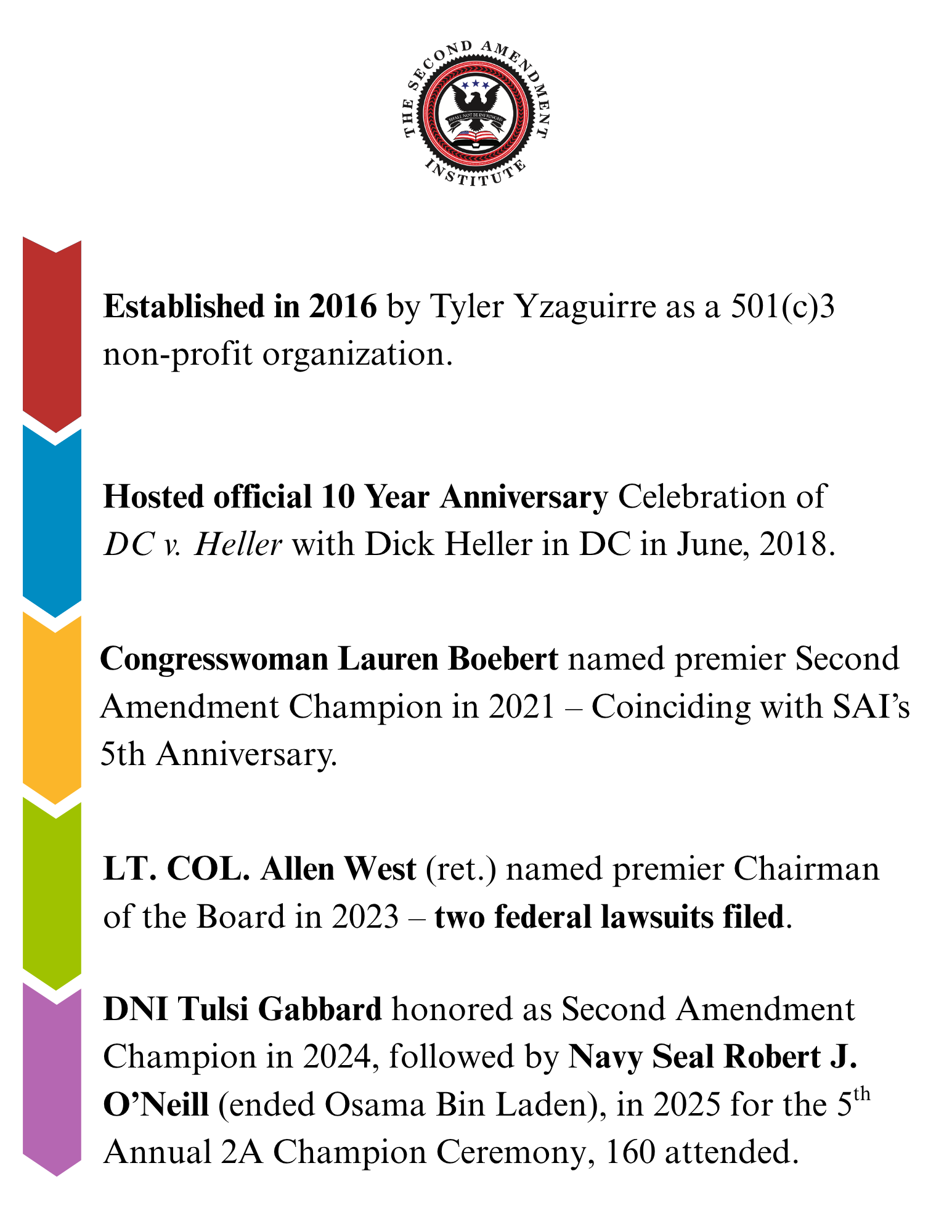 Join your Second Amendment Institute for its annual Board of Directors meeting! This is your exclusive opportunity to see the inner workings of one of the most impactful 2A organizations up close and personal. Spend two jam-packed days with the Board as we explore historic, downtown Charleston, SC, engage in thoughtful conversation over shared meals, and hit the town Friday night!
